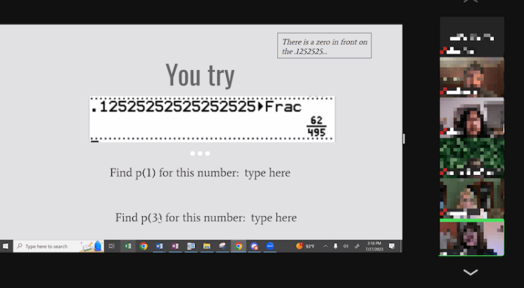 “The program was so well organized!!! You explained the structure in advance. The materials were readily available. The reminders you sent about the Zoom meetings were particularly helpful. The problem sets were wonderful. The problems were interesting and didn’t assume a lot of background knowledge. The level of difficulty seemed good for high school and middle school teachers.“