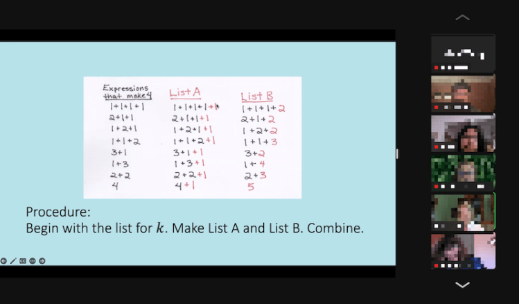 Who: The program is designed for current K-12 teachers (folks who teach elementary, middle, or high school) who are interested in stretching themselves mathematically and connecting the math that they teach with recent progress on interesting and important mathematical problems. Pre-service teachers and math education students are welcome. Teacher educators, math coaches, and those in related roles are also welcome join in.